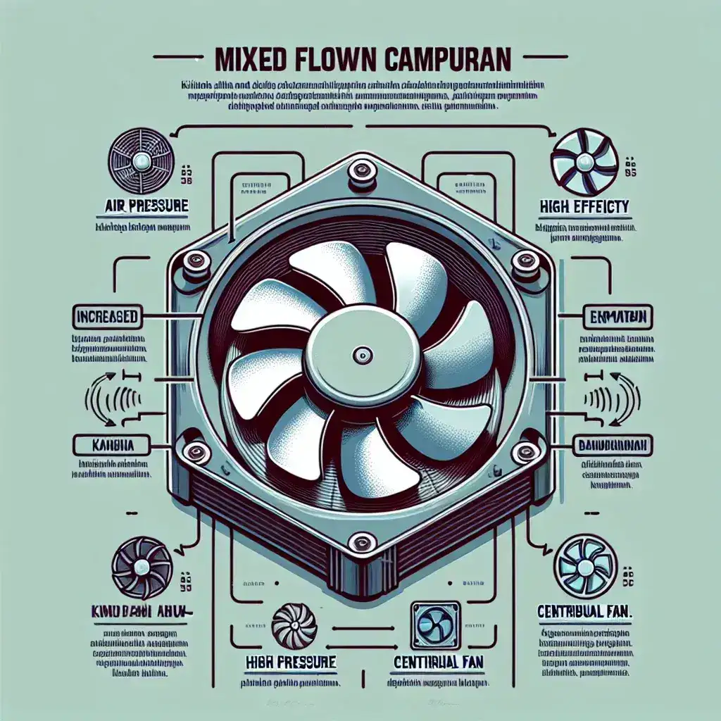Kipas aliran campuran adalah salah satu jenis kipas yang menggabungkan karakteristik kipas aksial dan kipas sentrifugal. Kipas ini dirancang untuk menghasilkan aliran udara yang kuat dengan tekanan yang lebih tinggi dibandingkan dengan kipas aksial dan biaya energi yang lebih rendah daripada kipas sentrifugal. Kipas aliran campuran sering digunakan dalam berbagai aplikasi industri karena kinerjanya yang efisien dan fleksibilitasnya.